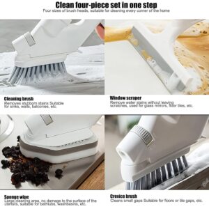 - Package include: 1x Cleaning handle with adjustable water spray size, 4x Brush Head Replacements, which can replace different brushes as needed, especially suitable for cleaning glass, glass window gaps, kitchen walls, and gaps.