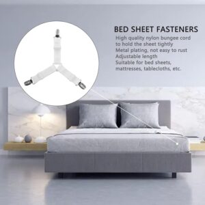 Bed Sheet Fasteners, Adjustable Triangle Elastic Suspenders Gripper Holder Straps Clip for Bed Sheets, Mattress Covers, Sofa Cushion (4 Pcs Set)