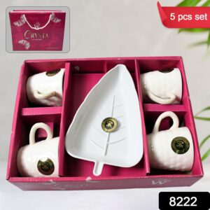 8222 Crysta Ceramic Tea Cups With Plastic tray Environmental Friendly Festival for Milk Cup, Coffee Cup, Tea Cup, Breakfast Cup, Drinking Mug or Outdoor for Household Gift For Birthday (5 Pcs Set)