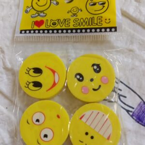 4564 Cute Smile Emoji Erasers, Cute Smile Face Rubber Eraser Dentist Dental Clinic School Kid for School Going Kids/Birthday Party Return Gift Set (4pc Set)