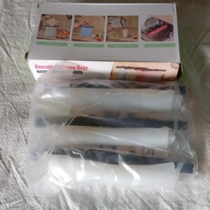 - Food grade material Reusable silicone Seal Bag Made of food-grade silicone and BPA free or any poisonous chemicals, tasteless. These food bags are foldable and store at home or easy to take camping or on a trip. Just put it in the dishwasher and wash it.