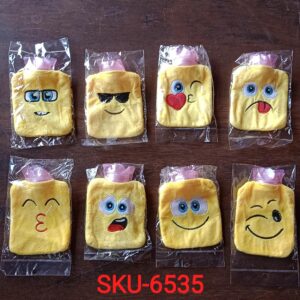 6535 1pc Mix Emoji designs small Hot Water Bag with Cover for Pain Relief, Neck, Shoulder Pain and Hand, Feet Warmer, Menstrual Cramps.