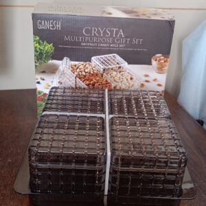 Ganesh Multipurpose Gift Set, Dry fruit Acrylic Air-Tight Dry Fruit Container Tray Set With Lid And Serving Tray, Airtight Plastic Storage Container Set (4 Pcs Set / With Tray)