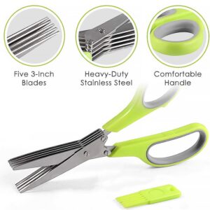 8244 Herb Cutter Scissors, 5 Blade Scissors, Kitchen Multipurpose Cutting Shear with 5 Stainless Steel Blades, Safety Cover & Cleaning Comb