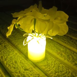 • All-in-One Design This unique product combines a vase and silk flowers with a glass base, offering both ordinary decor and a cosy atmosphere with its soft glow, all powered by batteries.