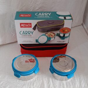 5588 Miracle Carry Lunch Box Microwave Safe Lunch Box With Insulated Bag 2 Compartment Lunch Box (400 ML / 2 pc)