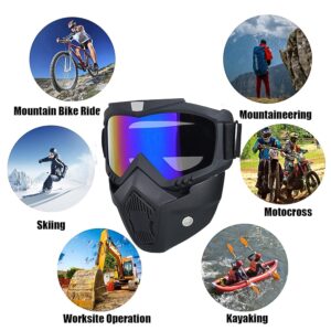 Outdoor Motorcycle Goggles Off-Road Helmet Goggles Windproof Glasses Goggles Mask Goggles Ski Goggles Café Racer Goggles, UV Protection Goggle Mask Anti Scratch Mouth Filter for Cycling Bike Off Road Racing Ride Unisex (1 Pc)