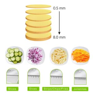 - You control the slicing completely, simple and safe and two different cutting styles, the slicer offers you dozens of ways to prepare ingredients for quick and tasty salads, fruit platters, soups, French fries, stews and more.