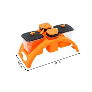 The virgin plastic is 100% food grade and is sturdy and reliable. This makes it safe for use in the long run. Stylish design the rack is designed to suit the modern decor of your kitchen and is stylish. This attractive masala rack will make your kitchen the envy of all your friends. The containers are transparent with a black cap. This ensures that you will easily know when your supplies need to be restocked. The jars are rotatable and hence really easy to use. The spice rack is designed with maximum storage capacity occupying minimal space with a very stylish look. It is easy to clean and easy to maintain and, therefore, your perfect choice to organize your spice cabinet, Athana Dabbi