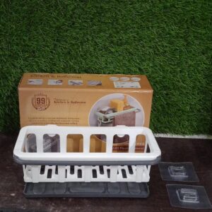 8788 Multipurpose Platic Hanging Drain Rack Retractable Sponge Storage Hanging Rack With Adhesive Hook for Kitchen and Bathroom Dishcloth Holders Basket Drying Tray Organizer