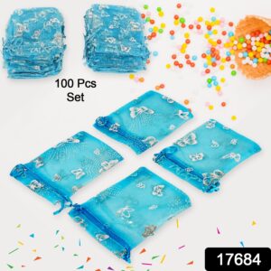 17684 Organza Return Gift Bags Small Mesh Bags Drawstring Gift Bags Christmas Drawstring Organza Gift Bags, Wedding Party Festival Gift Bags, Jewellery Packing Pouch Dry Fruit Pouch 10×12 Cm (100 Pcs Set)
