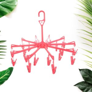 7045 Plastic Foldable Underwear Hanging Dryer Clothes Clips Hanger Drying Rack, Clothes Hangers with 16 Clips, Clip Hanger Drip Hanger for Drying Underwear, Baby Clothes, Socks, Bras, Towel, Cloth Diapers, Gloves