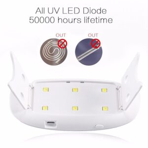 LED UV Nail Polish Dryer is fast and comfortable. It is low wattage but quick-drying, which can shorten your curing time by 30% or overheat than other mini dryers. Quick and quiet, NO NEED ANY FANS! Pocket-size with micro USB port and USB line make it. Ideal for constant travels. USB cable is long enough for you with length of 1 Meter.