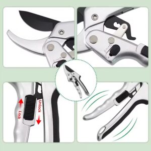 - Unique sliding lock design: garden shears are equipped with a safety lock for easy opening and closing. Tough branches can be easily cut and are easy to handle. Safe to use and easy to store.