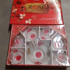8234 Rose glass Multipurpose Pudding / Dessert / Ice Cream Bowl Set for Home use, Home & Kitchen Serving Bowl for Sundae, Sweets, Snacks, Fruit, Pudding, Nuts or Dip, Serving Bowls 6 Medium & 1 Big Bowl (Set of 7 pc)
