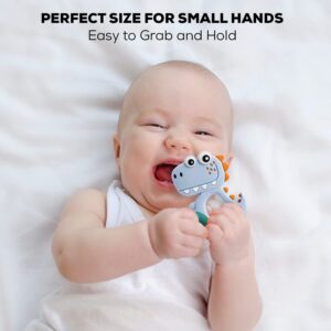 Silicone Dinosaur Teether for Baby, BPA Free Food Grade Silicone Teether for Babies to Soothe Their Gums, Easy to Grasp Chew, Teething Toy, Teether for 6 to 12 Months Baby Infant (1 Pc / Mix Design & Color)