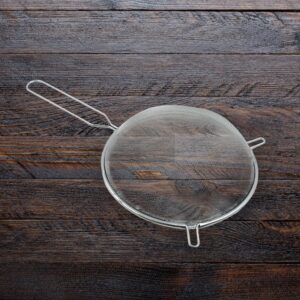 - Stainless Steel Premium Mesh Strainers Made of stainless steel, rust resistant and lightweight, but stronger than aluminum or and is long-lasting. Fine sieve strainer.