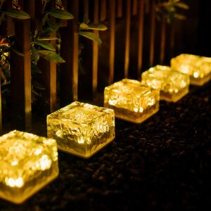 Solar Ice Cube Shaped Garden Light, Ice Cube Shaped Garden Warm Light Outdoor Solar Garden Decorative Lights for Walkway Pathway Backyard Christmas Decoration Parties