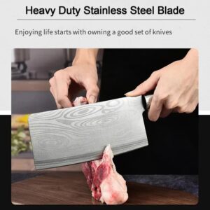 Stainless Steel Chef Damascus Cleaver Vegetable Knife with Plastic Handle & Cover, Multipurpose Use for Kitchen or Restaurant (12 Inch)