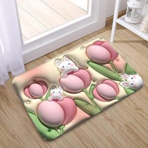 【Quick Dry Bath Mat】- Numerous tiny pores within the bathroom floor mat allows water evaporates quickly in the natural air. Usually, watermarks can magically vanish within few minutes. It won’t be damp when next one step on.