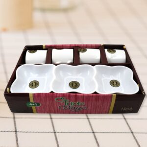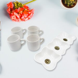 Triple Mazza Ceramic Tea / Cups Set Including 3 Compartment Plastic Serving Platter, Milk Cup / Mug, Coffee Cup, Tea Cup BPA Free Food Grade, or Outdoor for Household Gift For Birthday (4 Pcs Set)