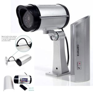Dummy CCTV Security Camera can be used to expand your existing security system by creating the impression that you have more camera coverage than is actually installed. They can also be used to temporarily replace faulty cameras in case spares are not available while repairs are being performed. This dummy camera is designed to look like a silver, wired IR bullet camera and includes a flashing red LED to indicate camera activity